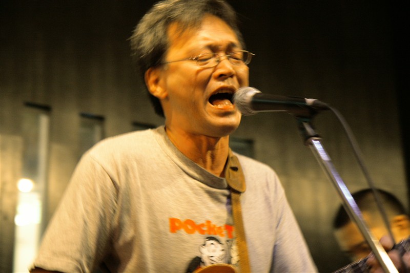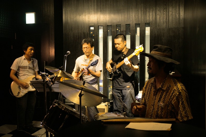 この日のライブは小安田さんの歌とギターをメインに、江口さんのベース、木村さとしさんのギター、小田智昭さんのドラムだ。