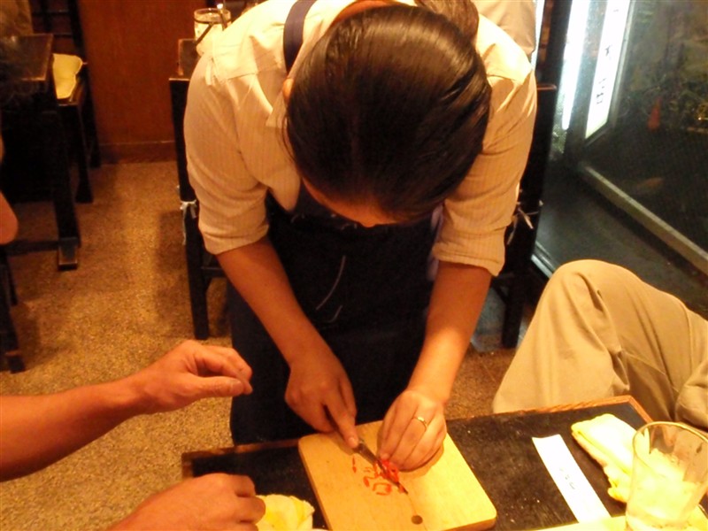 厨房から小さなまな板を持ってきて、ハバネロをみじん切りに。