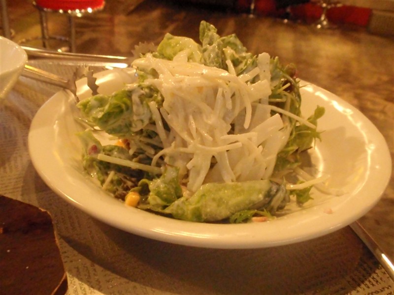 店員がやや細長い筒状のケースにサラダを持ってきて、注文した客の前で何やら気合の口上をでかい声で叫ぶ。