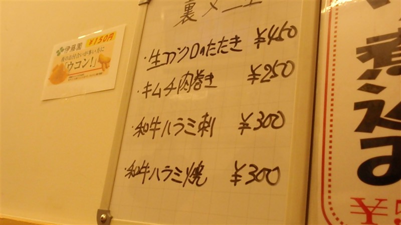 「裏メニュー」が貼ってある。
