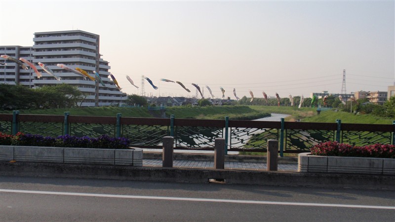 志木市役所横の「鯉のぼり軍団」。