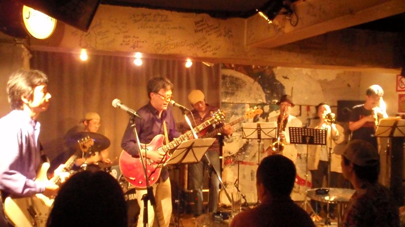 小安田憲司(g)、柴田摂子(g)、早崎詩生(p)、小町正明(b)、岡地曙裕(d)、湯川治往(per)、そして私の7名。