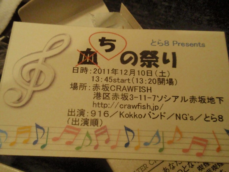 12月10日(土曜)、赤坂CRAWFISH(クローフィッシュ)にて。