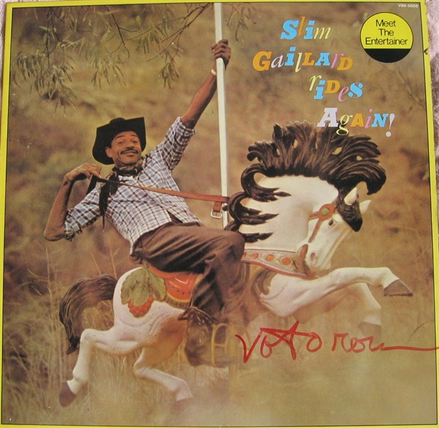 スリム「ほー、この裏は日本語かい?どれが”SLIM GAILLARD”て日本語かな?」
